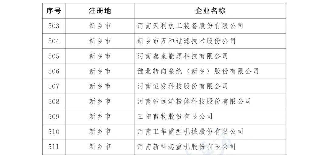 近日,河南省地方金融監督管理局公布了2023年三季度河南省省定重 點上市后備企業名單,共887家。新鄉32家企業入選。