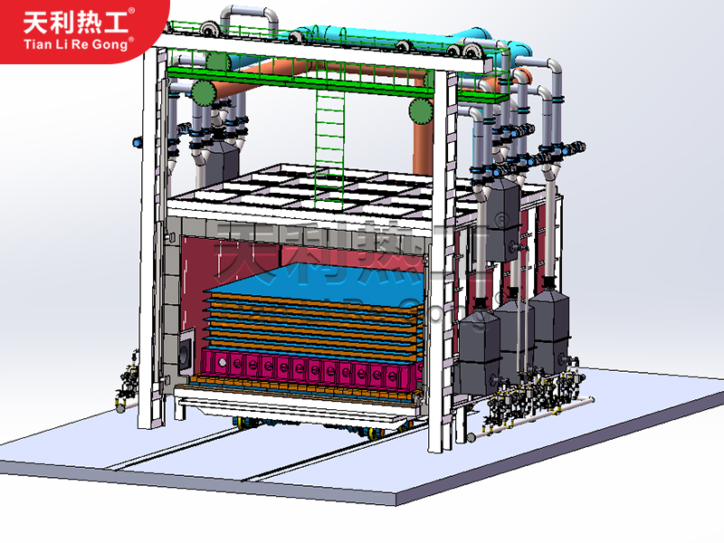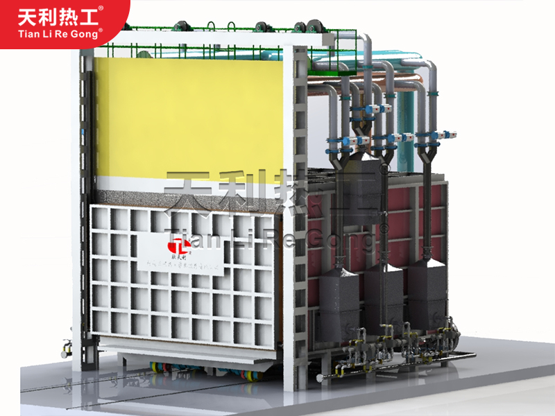 “RQT3-4000-12蓄熱式臺車燃?xì)饧訜釥t”是我公司研制的用于大型封頭類零件的加熱熱處理工藝的一種新型大型設(shè)備,具有密封性能好、智能化控溫、NOX化合特排放符合環(huán)保要求的特點(diǎn),能夠大幅提高生產(chǎn)效率、降低人工成本、實(shí)現(xiàn)綠色節(jié)能的效果。NOx超低排放≤120mg(不加任何脫硝設(shè)備);實(shí)現(xiàn)了實(shí)用范圍600-1250度內(nèi)超高爐溫均勻性±6℃;復(fù)合保溫工藝及迷宮式密封結(jié)構(gòu)實(shí)現(xiàn)煙氣氧含量6%左右。